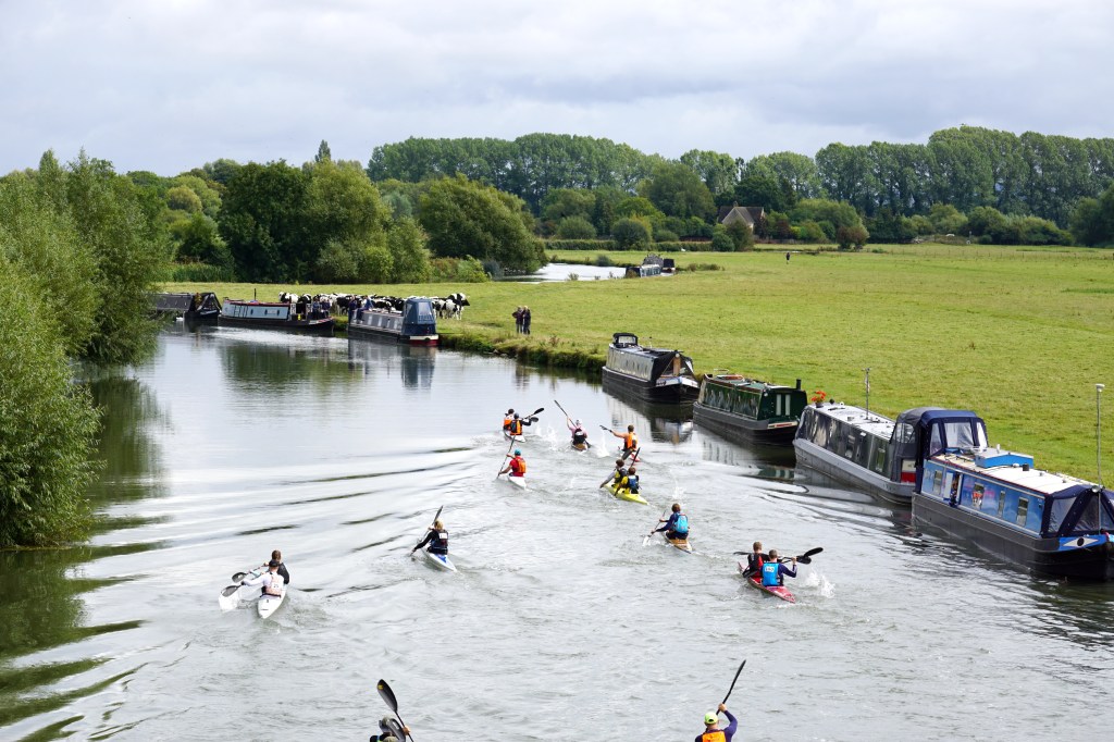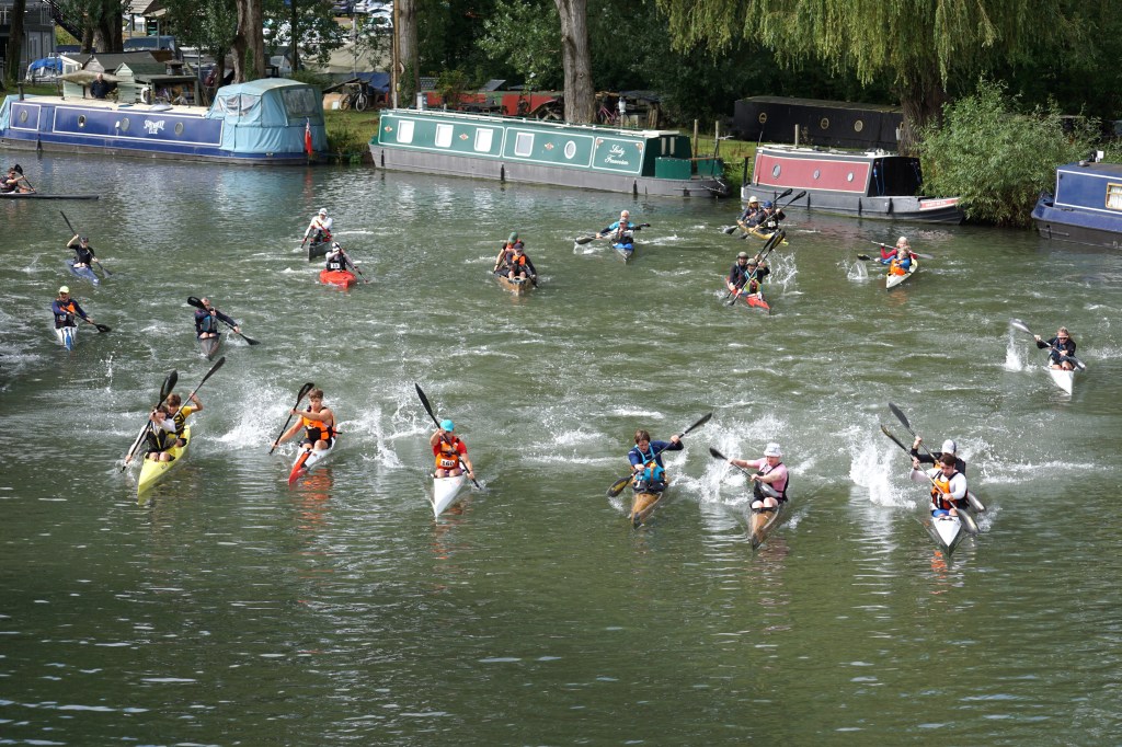 Spectators gathered on either side of the river and peered over the edge of Ha’penny Bridge, the official start of the navigable Thames. Relay teams and straight-through’ers, K1s, K2s, and canoes – thirty odd boats formed a blob across the river. “Thirty seconds” shouted the starter. The relay crews paused for a few seconds, then started pushing the line. “Hold your boats.” They pushed a bit more. The starter raised his voice: “HOLD YOUR BOATS! Back, back, back!” Finally – “Paddlers, GOOOOOO!”