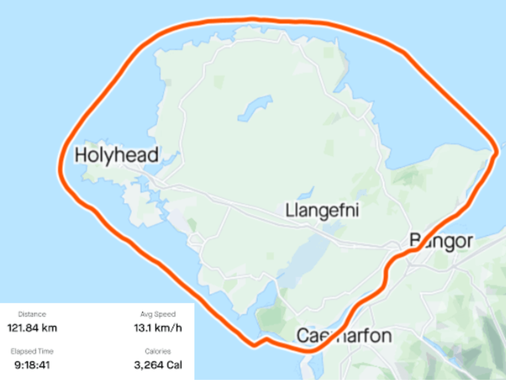 Billy continued around Holyhead, along the north coast, and past Point Lynas. He crossed Red Wharf Bay and took a tight line around Trwyn Penmon Point. Next up: Menai Strait. As Billy got further, the tide didn’t do quite what he was expecting. He knew the good tide wouldn’t last to the finish, and the bad tide would slow him down significantly. He started redoing the calculations for the record. Earlier in the circumnavigation, he’d stopped for a minute to film a pod of dolphins surrounding him. At the time, he thought he’d be well under the record. Now he was regretting the stop.